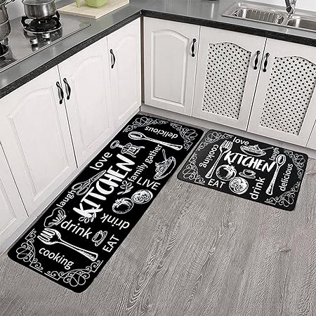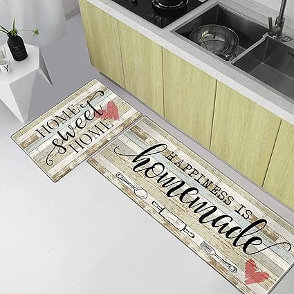 Set of 2, Anti-Fatigue Kitchen Rugs Non-Slip Kitchen Floor Mats, First New Home Warming Gifts - Home Sweet Home Kitchen Decor, 17"x 30"+17"x 47"