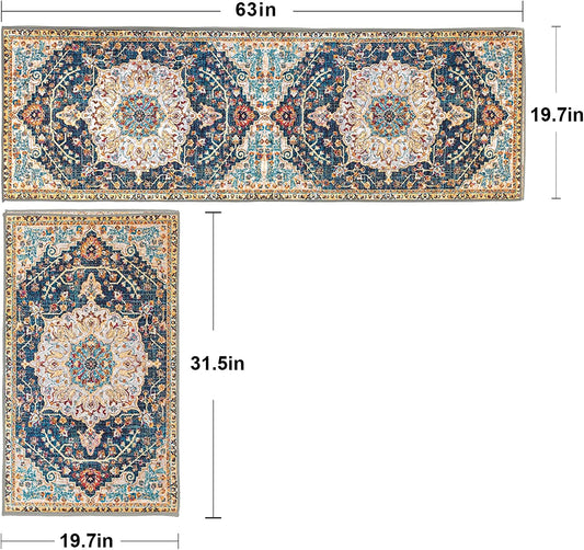 Set of 2 Non-Slip Bohemian Kitchen Runner Rug 63*19.7/31.5*19.7