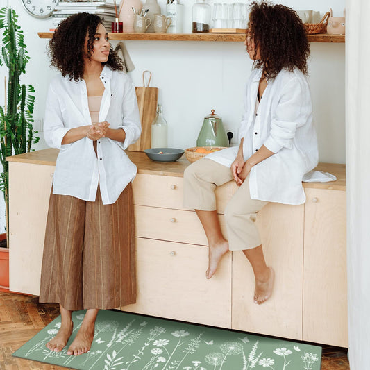 Set of 2- Plant Floral Butterfly Kitchen Rugs with Runner Decor Accessories Things - 17x30 and 17x48 Inch