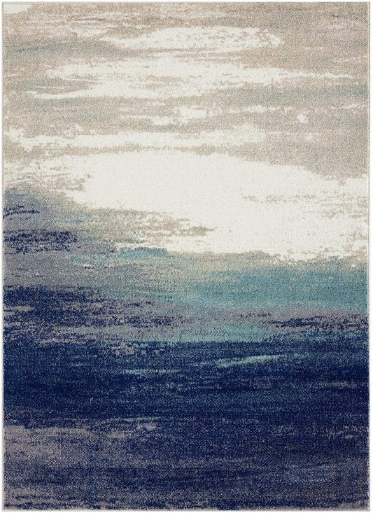 Sky Collection Modern Abstract Grey Cream Blues Soft Area Rug