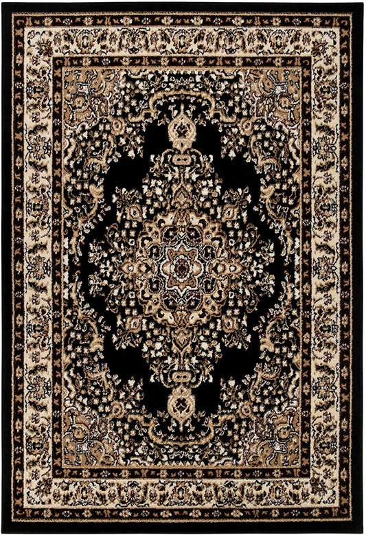 Siesta Collection Oriental Indoor Area Rug Black Beige