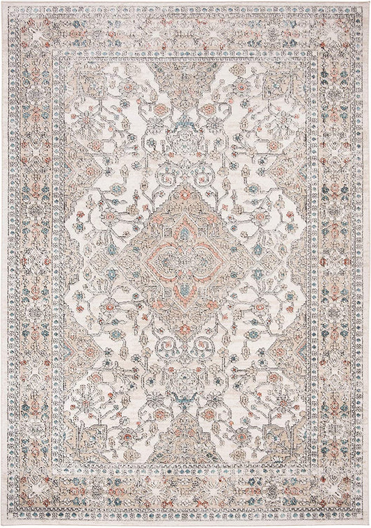 Sofia Collection Vintage Oriental Distressed Soft Area Rug Light Grey / Beige