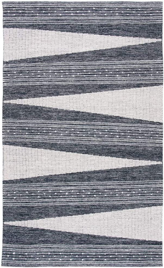 Striped Kilim Collection Handmade Flat weave Cotton Soft Area Rug Black / Ivory