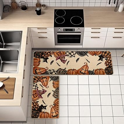 Spooky Pumpkin Black Cat Decorative Door Mat Non-Slip Rug for Home Kitchen Floor Mat 17x29 and 17x47 Inch DM98