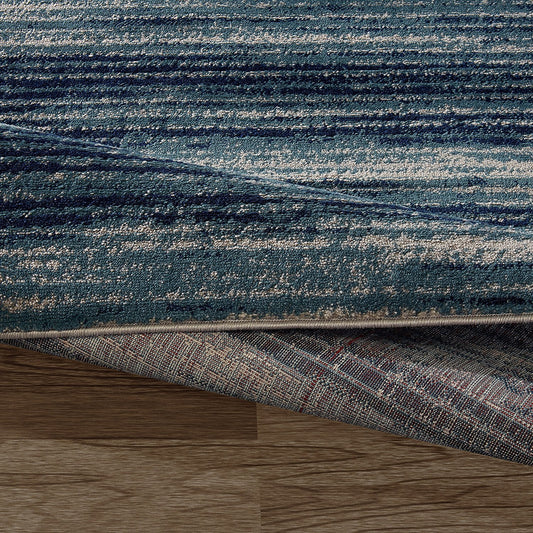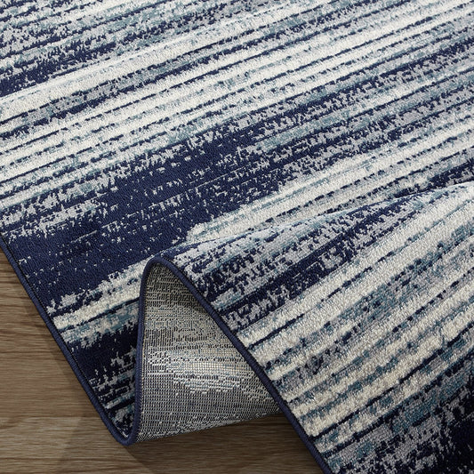 Stripes Design Ivory/Navy/Teal Area Rugs