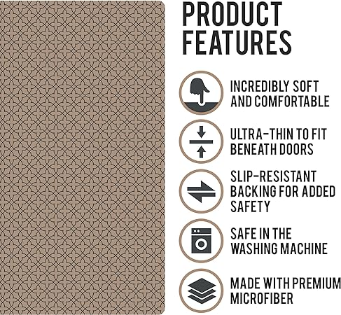 Ultra Thin Kitchen Rug with Non Slip Rubber Backing 35”x23” Cappuccino Design 1S