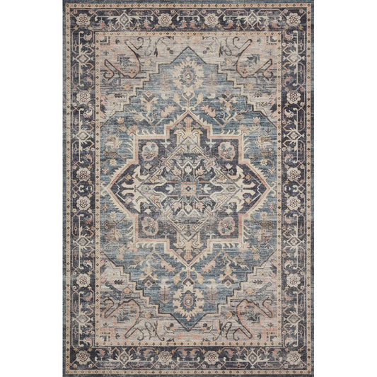 Venetian Printed Medallion Distressed Blue Gold Area Rug - Navy/Multi