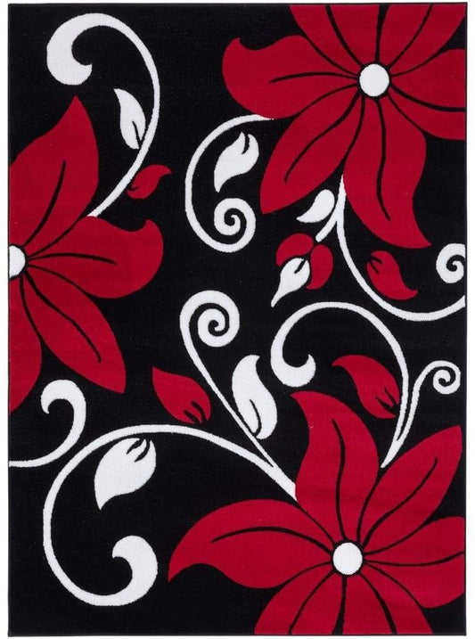 Victoria Collection Modern Red Floral Soft Area Rug