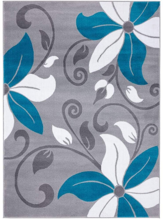 Victoria Collection Modern Turquoise Floral Soft Area Rug