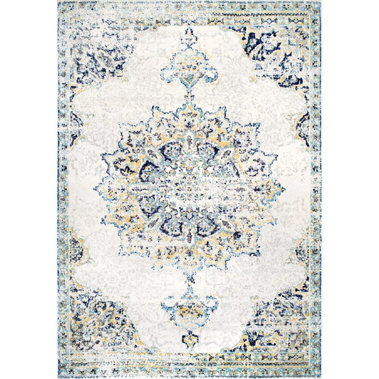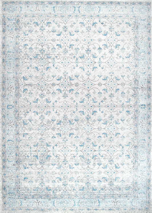 Vintage Persian Floral Ivory Blue Soft Area Rug
