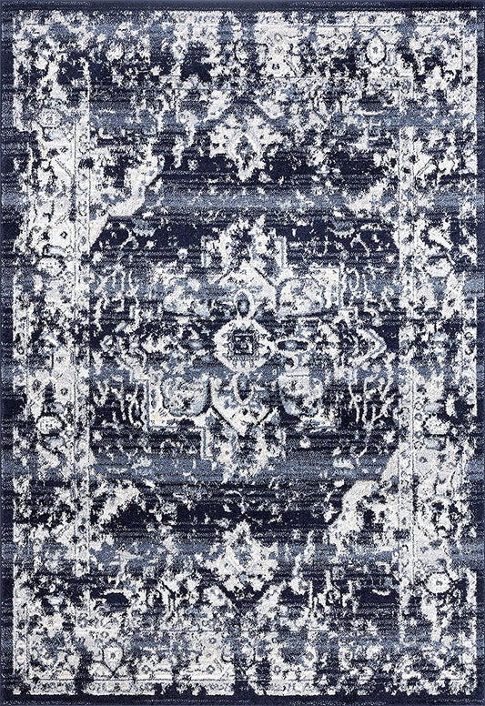 Vintage Navy & Ivory Traditional Turkish Medallion Distressed Rug