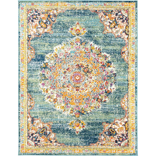Vintage Medallion Teal Orange Multi-color Area Rug