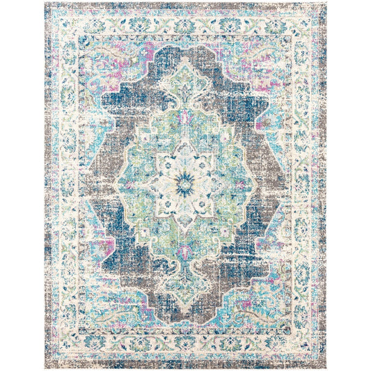 Vintage Medallion Teal Pale Fuchsia Multi-color Area Rug
