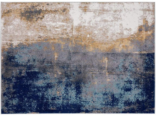 Beverly Collection Modern Soft Abstract Blue Gold Grey Area Rug