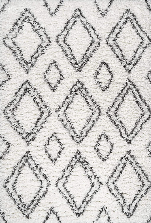 Beni Moroccan Style Diamond Shag Ivory/Dark Gray Soft Area Rug