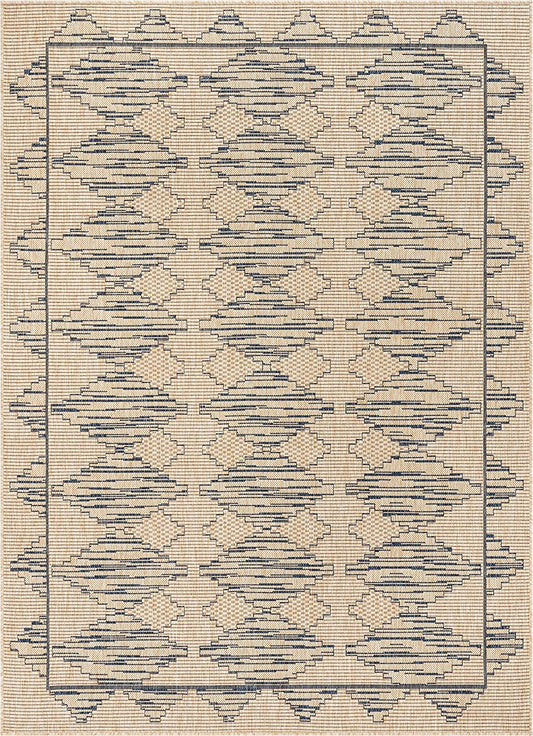 Beige Blue Indoor/Outdoor Flat Weave Pile Nordic Diamond Pattern Area Rug