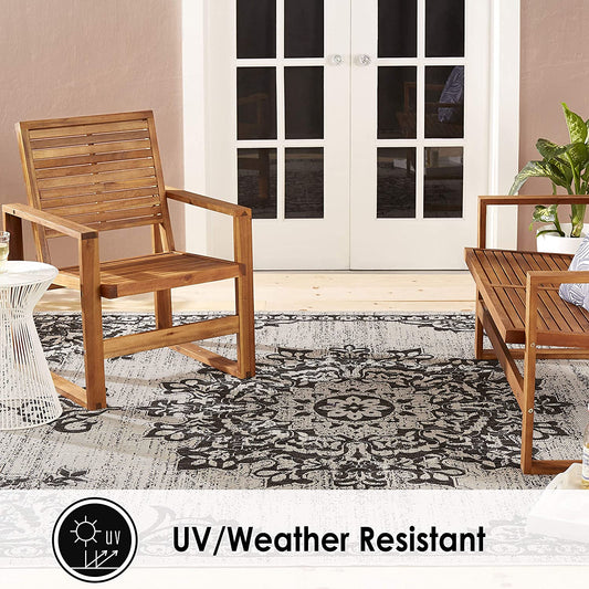 Black Grey Indoor/Outdoor Area Rug - UV/Weather Resistant