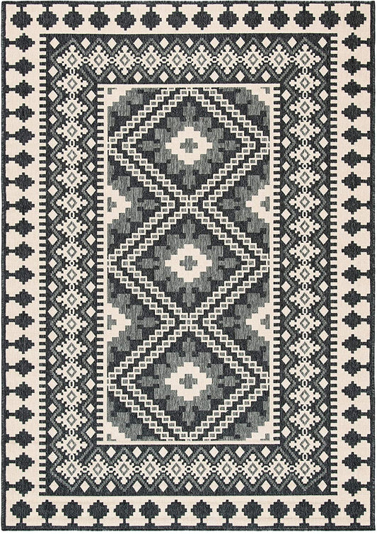 Boho Indoor/ Outdoor Patio Backyard Area Rug, Black / Cream