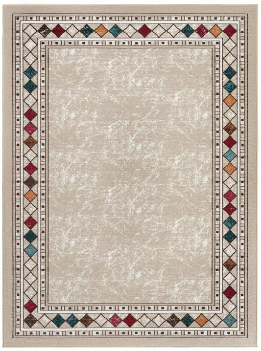 Bordered Non-Skid Low Profile Pile Rubber Backing Kitchen Area Rugs Beige