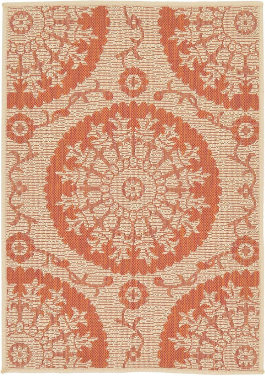 Botanical Collection Floral Abstract Transitional Indoor Outdoor Flatweave Beige /Terracotta Area Rug