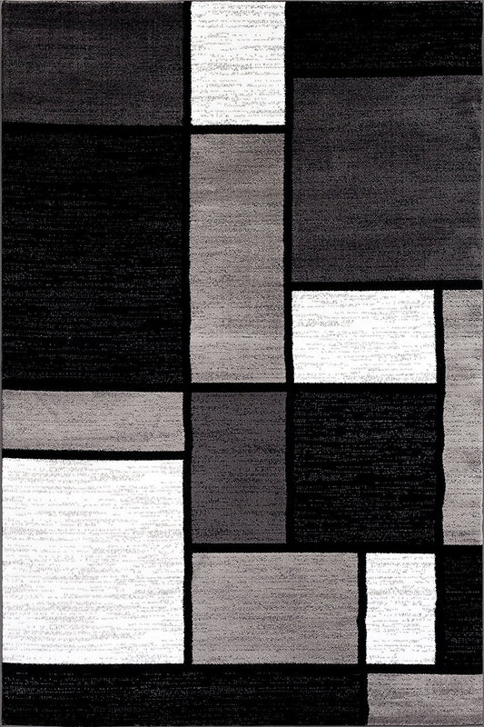 Box Pattern Gray/Grey Black White Area Rug
