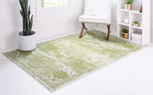 Bromley Collection Vintage Traditional Medallion Border Ivory Green Soft Area Rug
