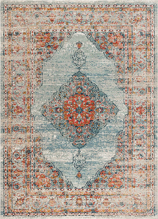 Cadiz Vintage Medallion Coral/Turquoise Soft Area Rug
