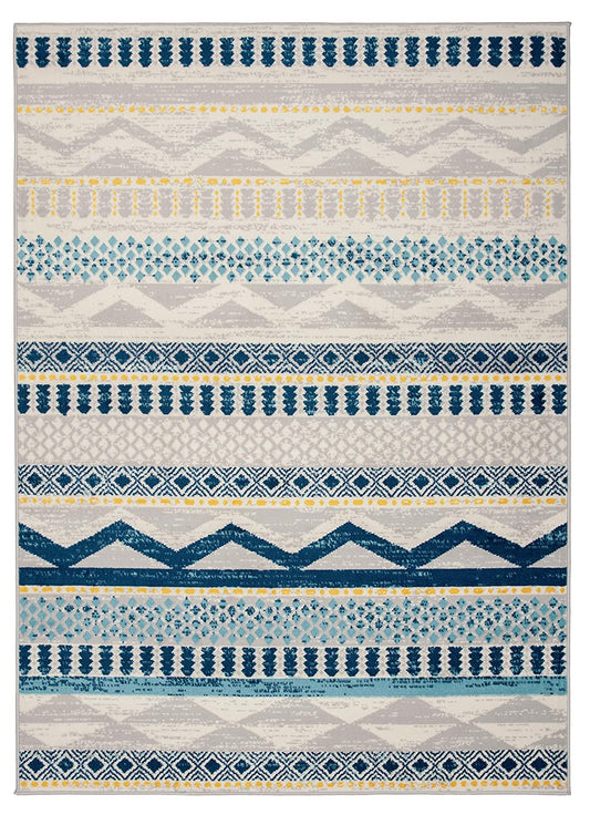 Contemporary Bohemian Blue Gray Ivory Area Rug
