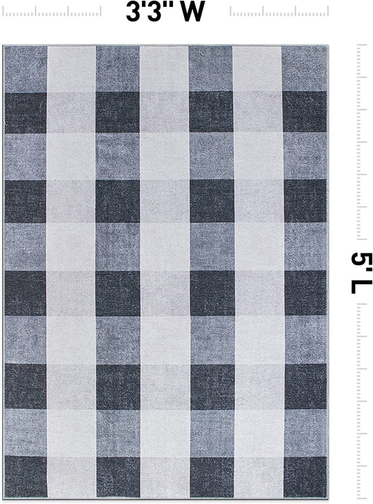 Contemporary Checkered Stain Resistant Flat Weave Eco Friendly Premium Recycled Machine Washable Area Rug 3'3"x5' Gray