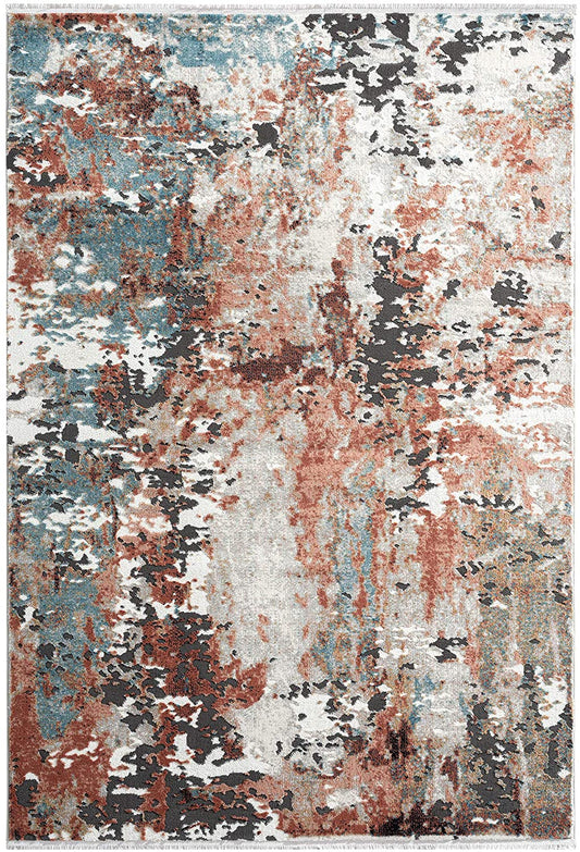 Contemporary Distressed Colorful Rust & Orange Area Rug