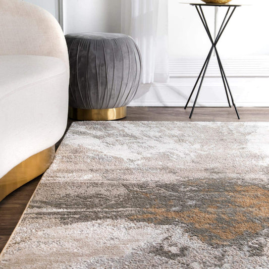 Cyn Abstract Silver Grey Tan Soft Area Rug