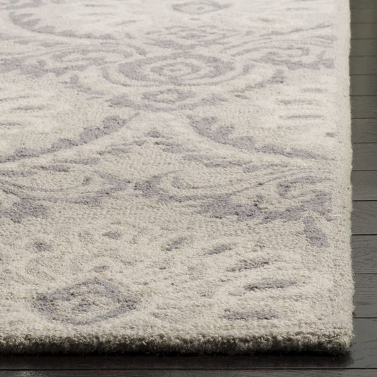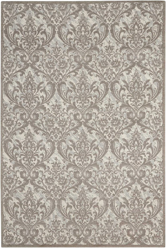 Damask Handmade Premium Wool Area Rug, Light Grey / Ivory