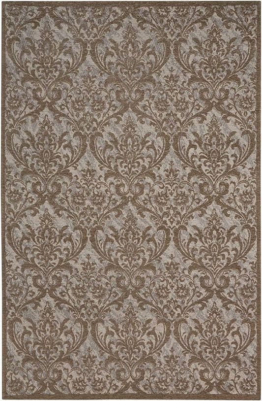 Damask Plush 1.2-inch Thick Area Rug, Dark Brown / Smoke