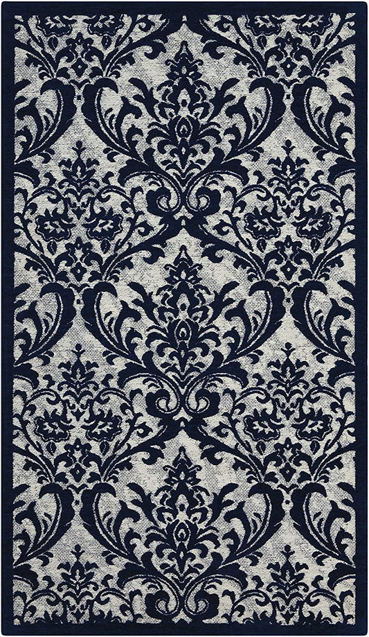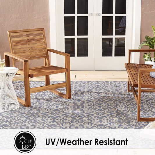 Damask Pattern Blue Grey Indoor/Outdoor Area Rug - UV/Weather Resistant