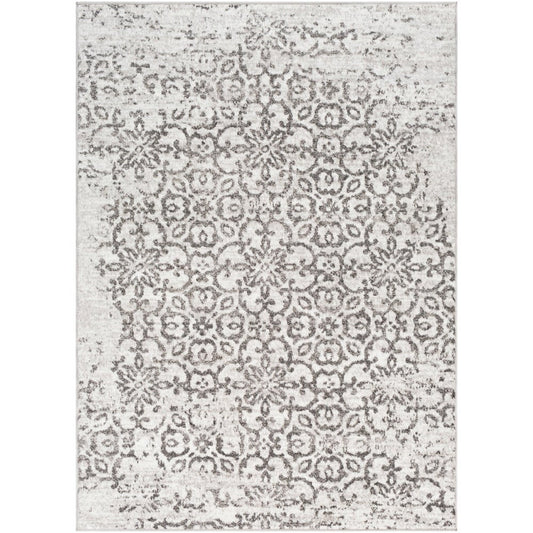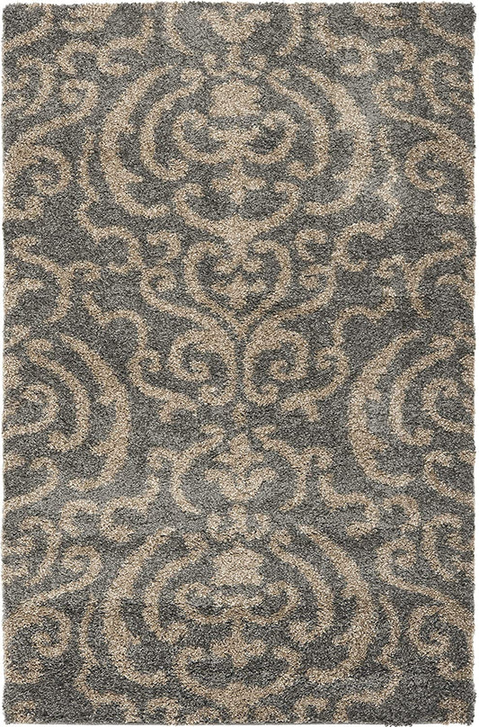 Damask Plush 1.2-inch Thick Shag Area Rug, Grey / Beige