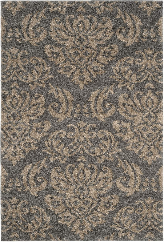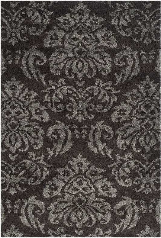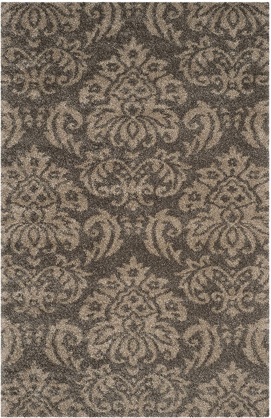 Damask Plush 1.2-inch Thick Shag Area Rug, Smoke / Beige