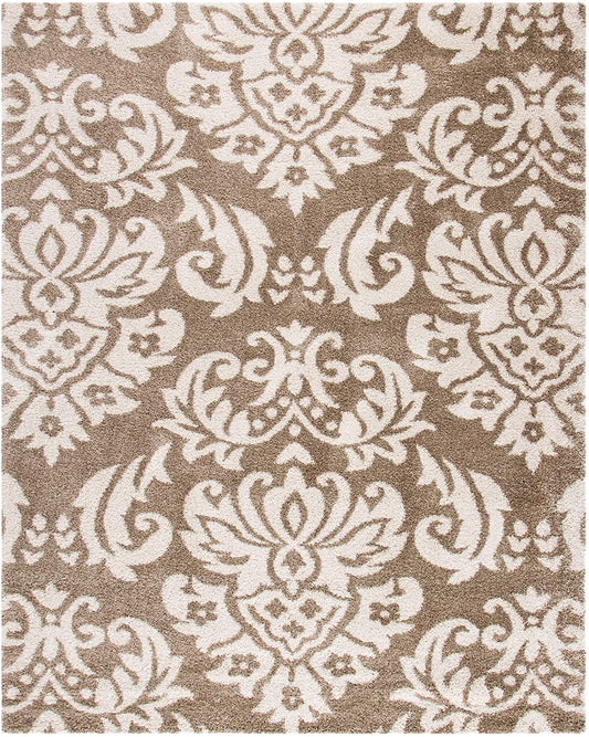 Damask Plush 1.2-inch Thick Area Shag Rug, Beige / Cream