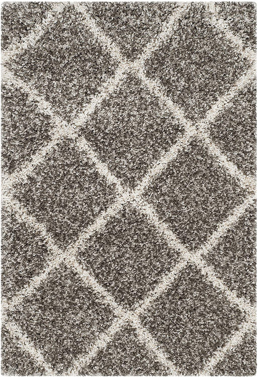 Diamond Trellis Dark Grey/Ivory Soft Plush Shag Area Rug 2-inch Thick