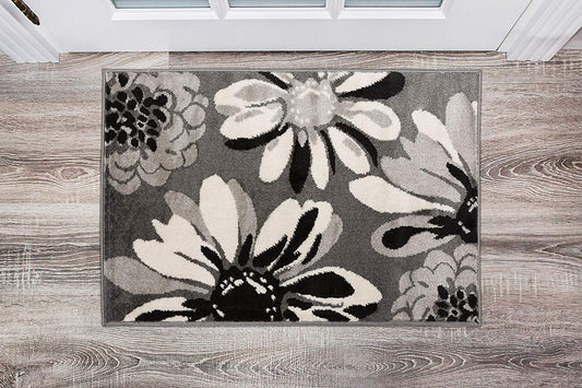 Floral Grey Charcoal Indoor/Outdoor Area Rug