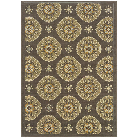 Floral Gray/Grey/Gold Indoor-Outdoor Area Rug