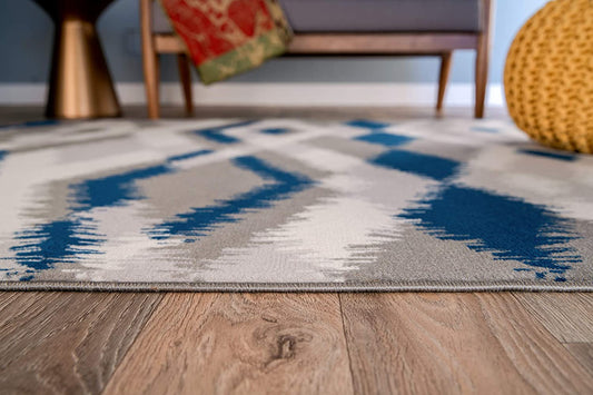 Geometric Blue Grey Indoor/Outdoor Area Rug - UV/Weather Resistant