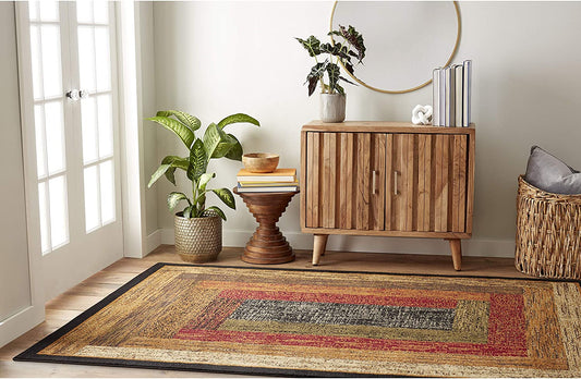 Geometric Bordered Black Brown Red Soft Area Rugs - Multiple Sizes
