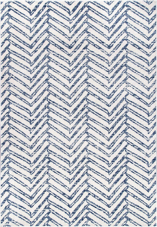 Geometric Navy Blue Gray Ivory Soft Area Rugs