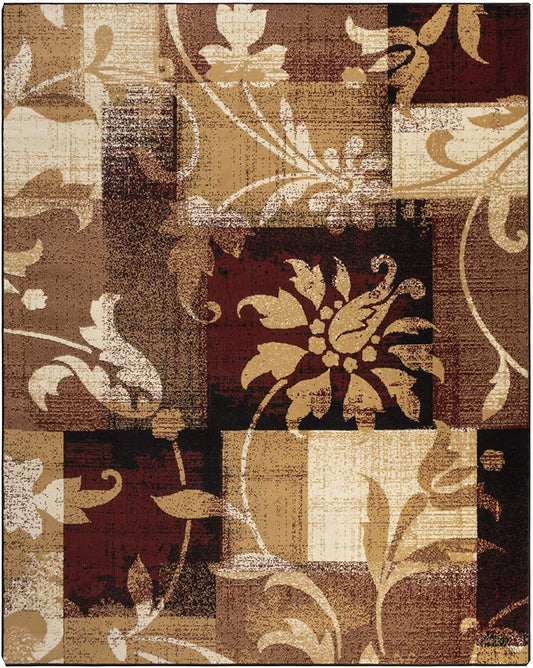 Geometric Patchwork Distressed Burgundy Soft Area Rug - Multiple Sizes Available