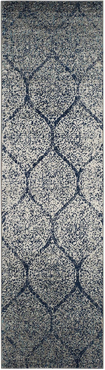 Geometric Trellis Distressed Navy/Silver Soft Area Rug