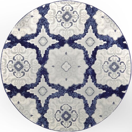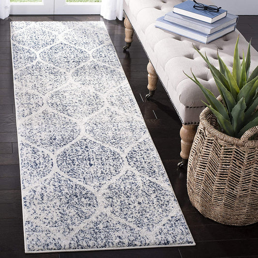 Geometric Trellis Distressed Cream Royal Blue Soft Area Rug