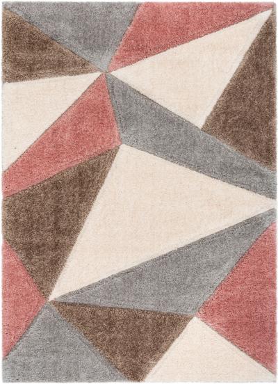Geometric Triangle Pattern Shag Grey Blush 3D Textured Thick & Soft Shag Area Rug