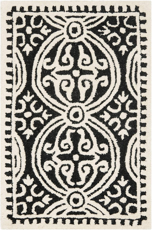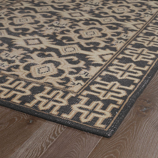 Handcrafted Geometric Black ivory Premium Wool Soft Area Rug