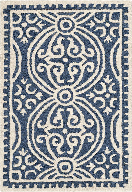 Handcrafted Geometric Navy Blue Ivory Premium Wool Soft Area Rug