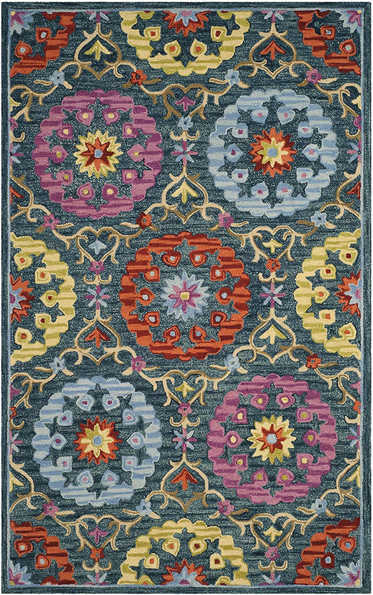 Hand-Hooked Boho Premium Wool Soft Area Rug Blue / Multi